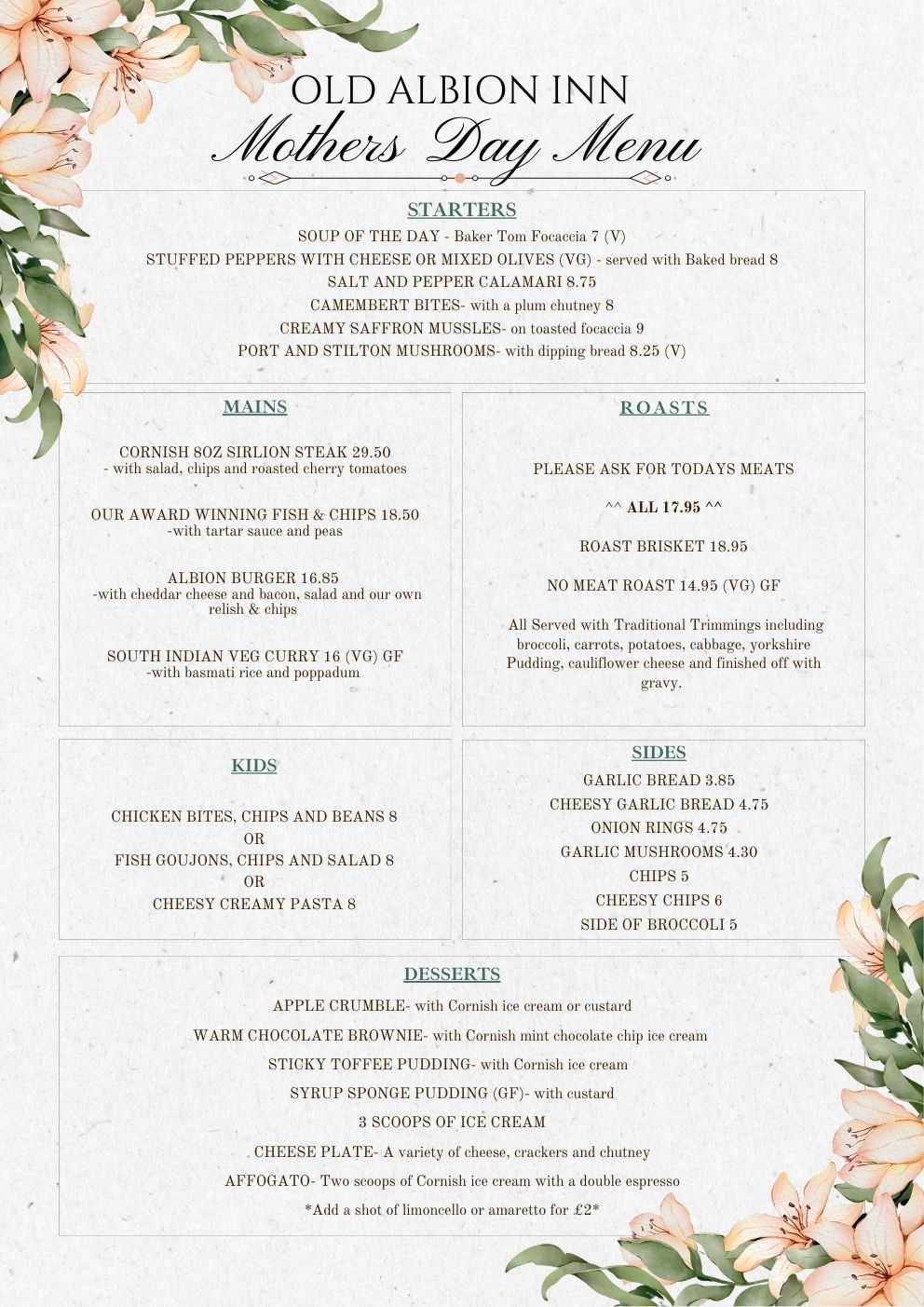 Open from 12-4pm | Food served from 12-2.30pm